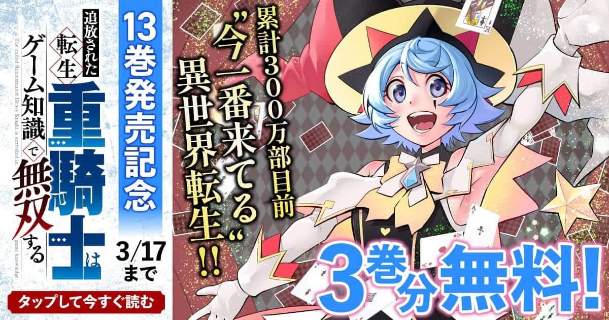 単行本13巻発売記念『追放された転生重騎士~』3巻分無料!