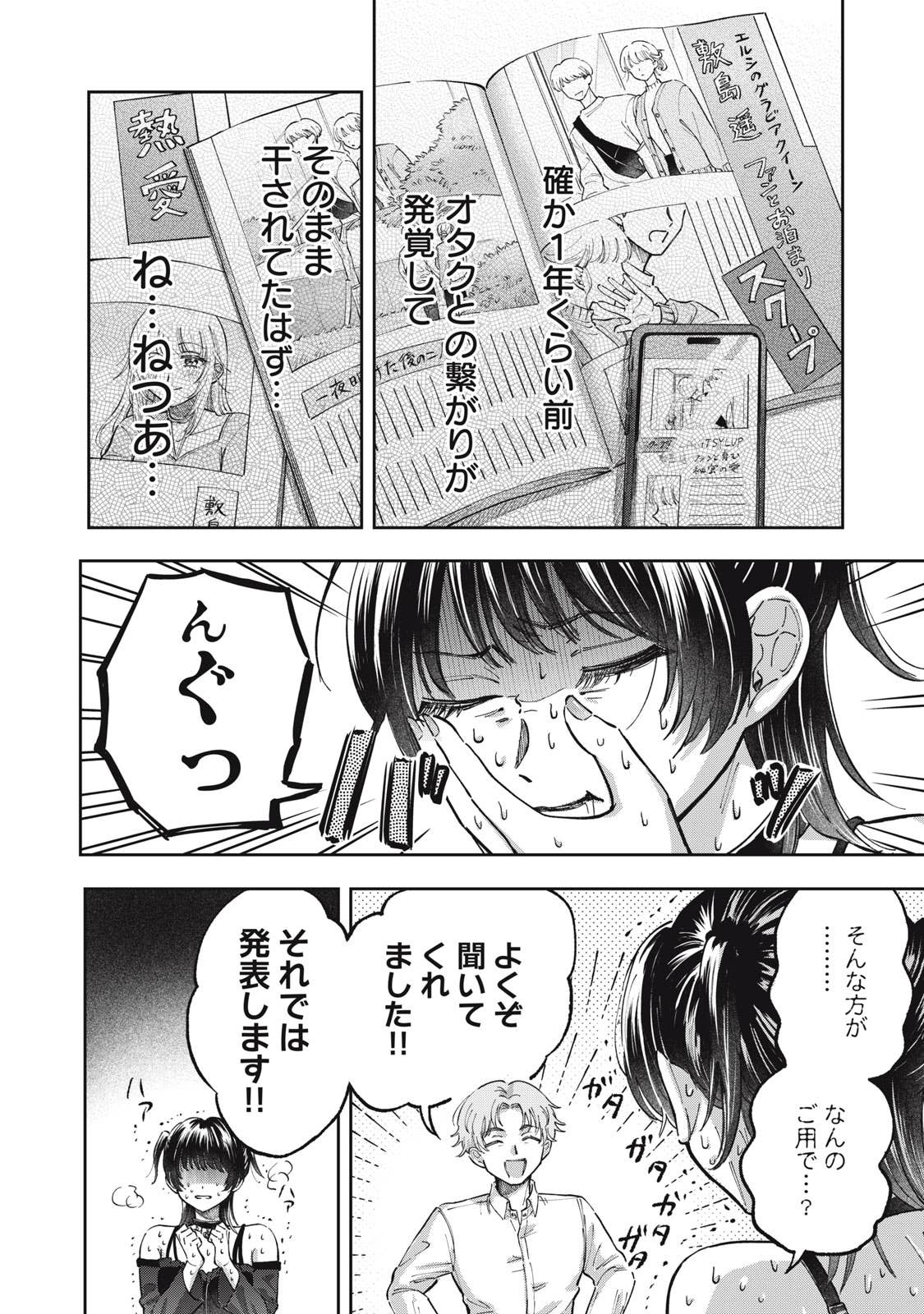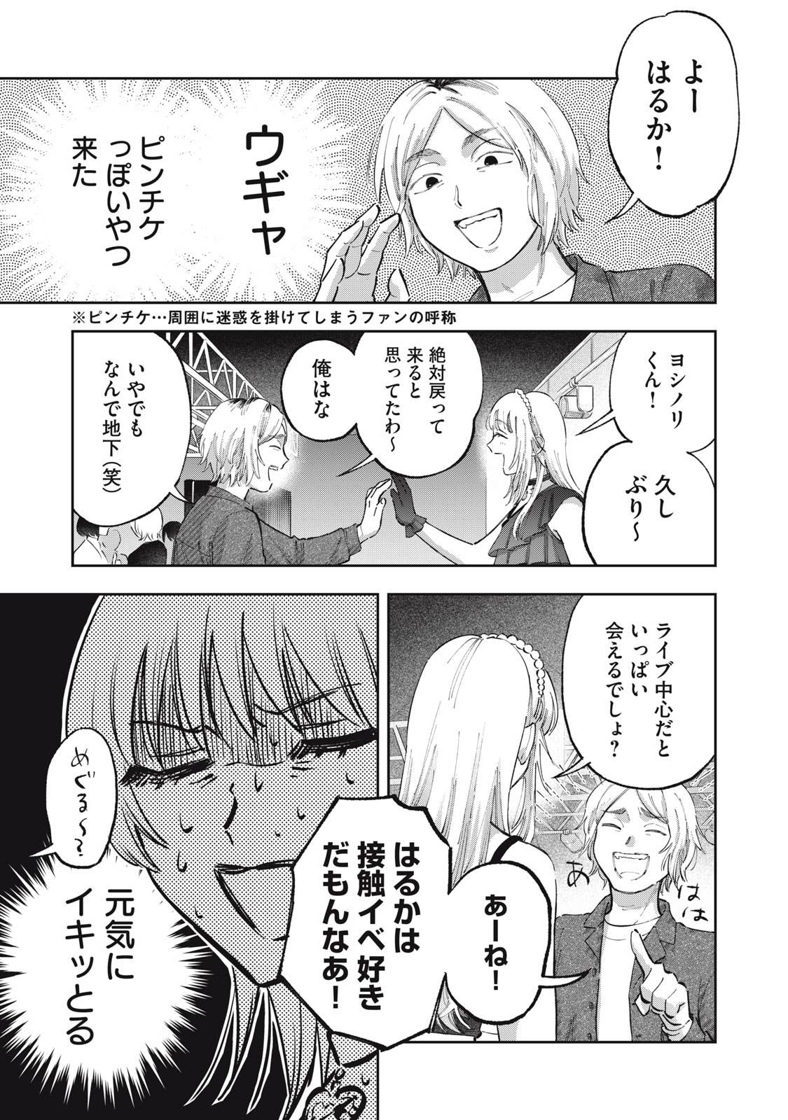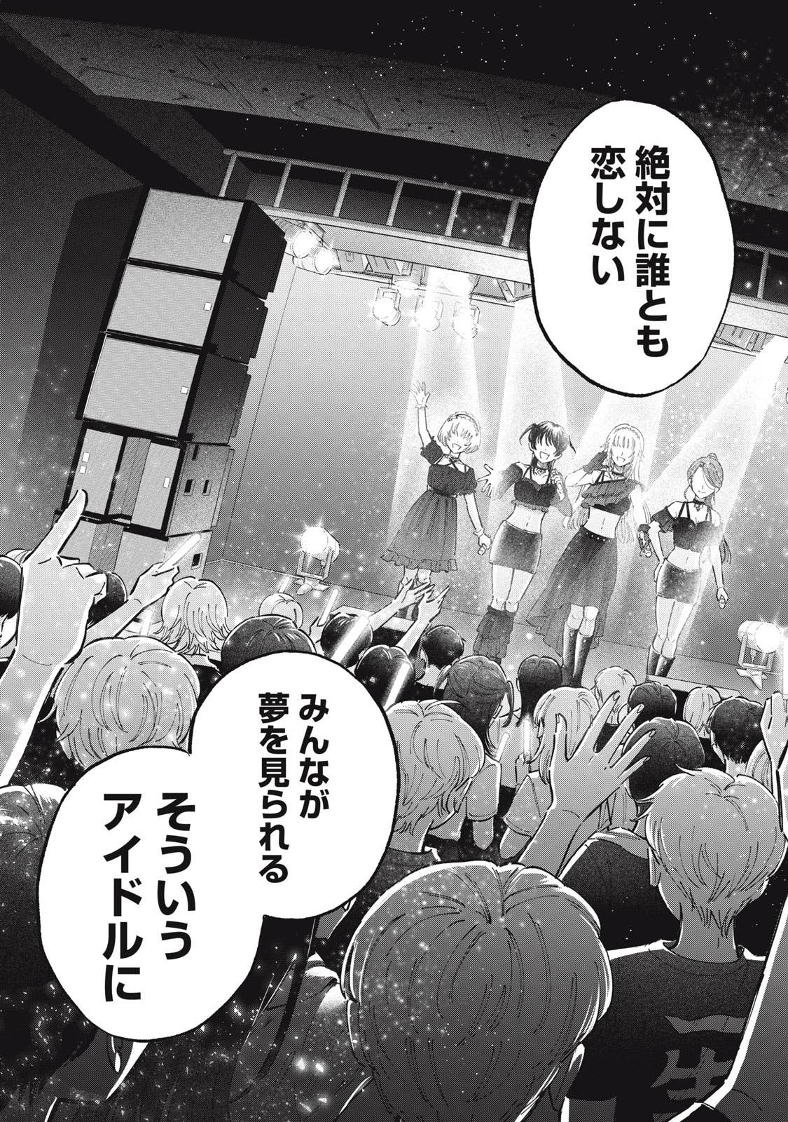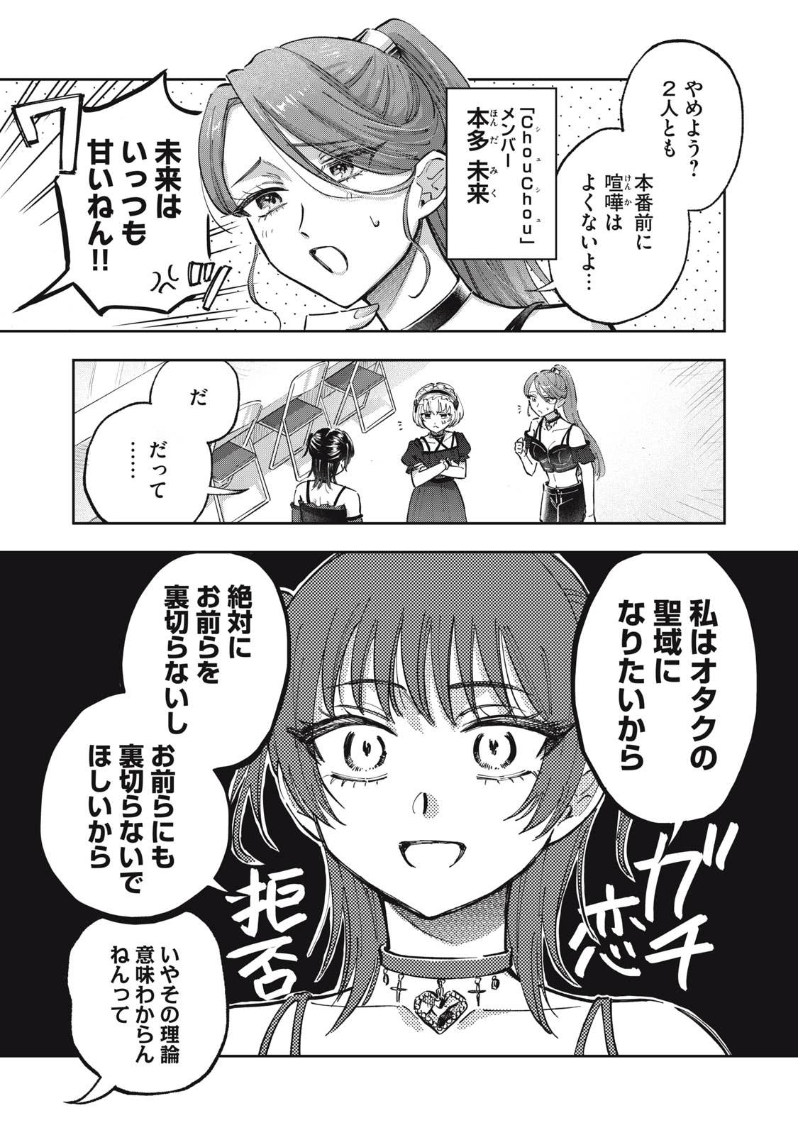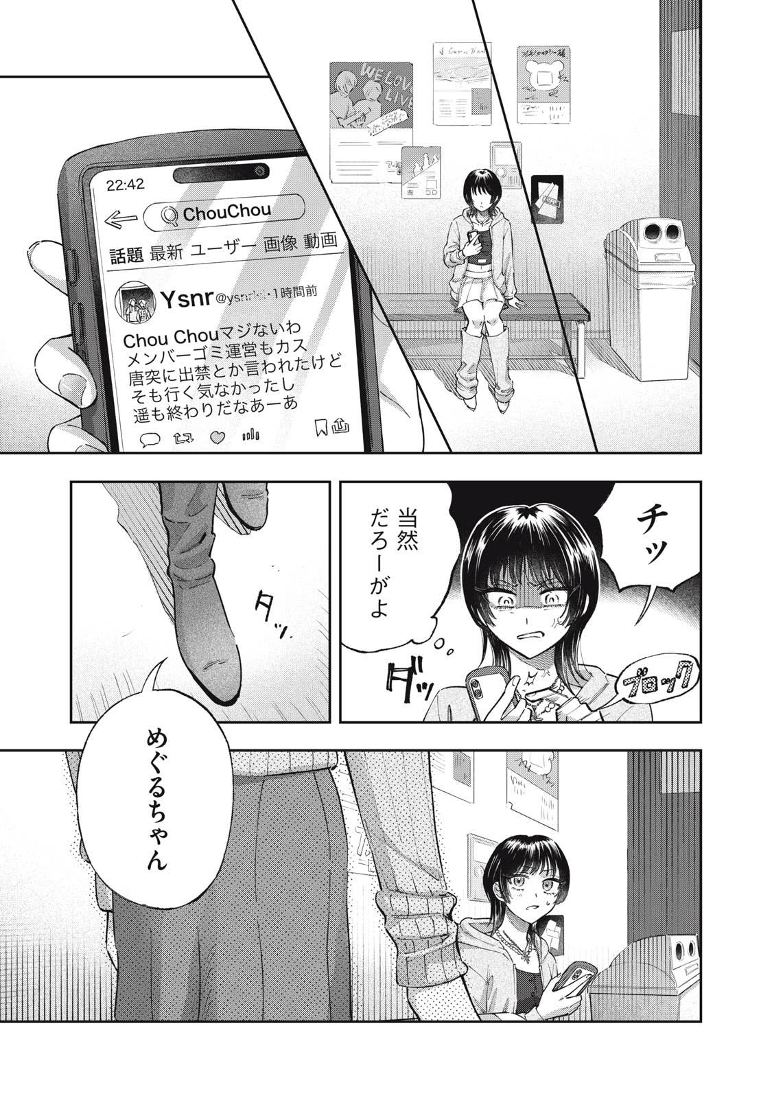 推しがことごとくオタクと繋がって(交際して)引退してしまう、かわいそうなアイドルオタクの五月めぐるは、自分自身が”ガチ恋厳禁”の皆が安心して応援できるアイドルになればいいという理論に辿り着き、アイドルグループ「ChouChou」としてデビューする。しかしそこに新加入メンバーとして現れたのは、かつてファンとの繋がりが噂されたアイドル・敷島遥で‥‥。