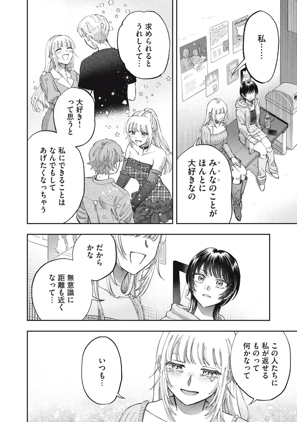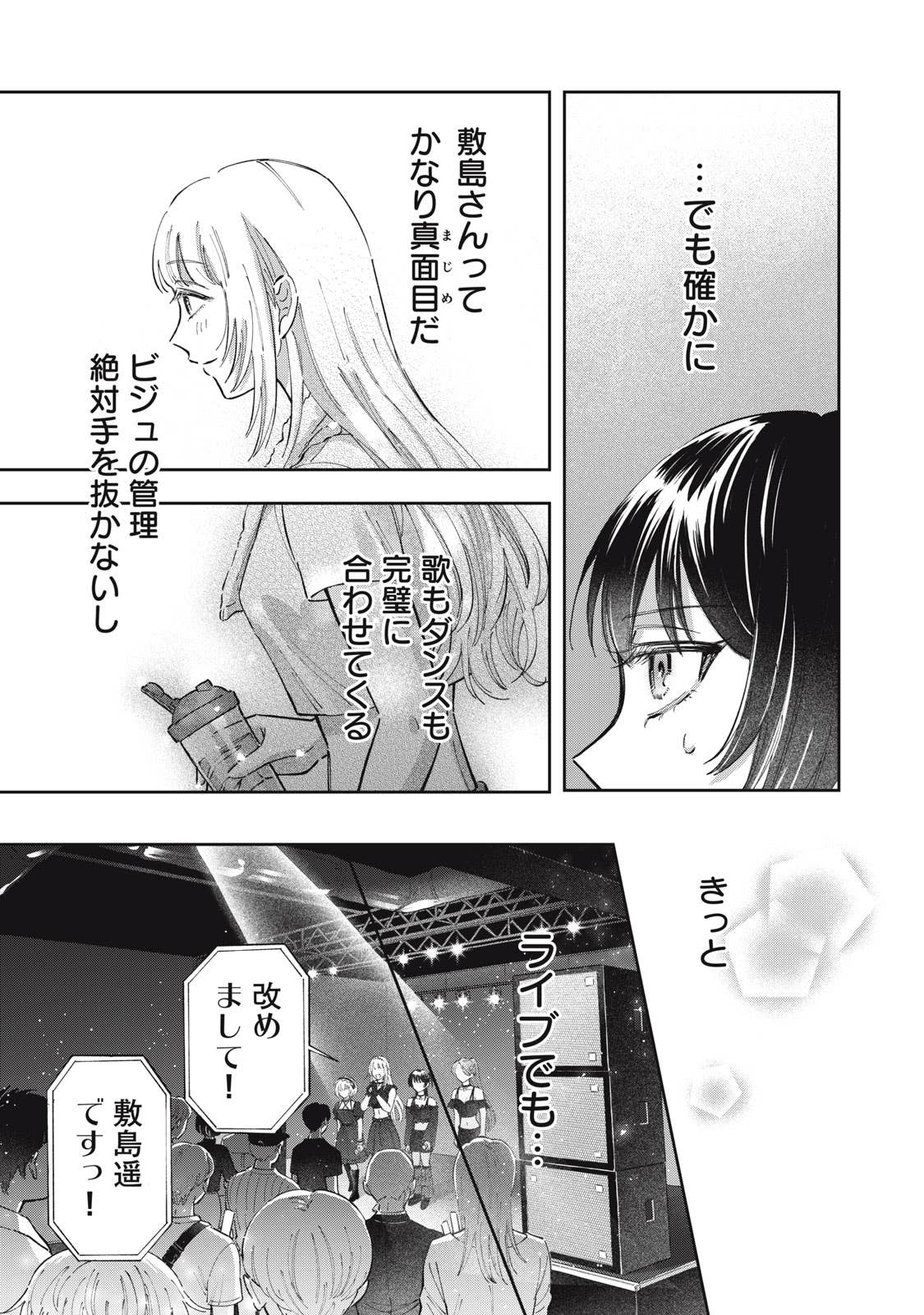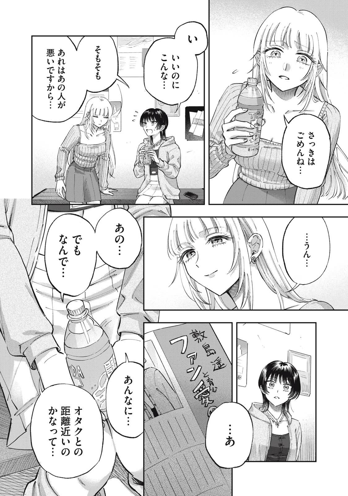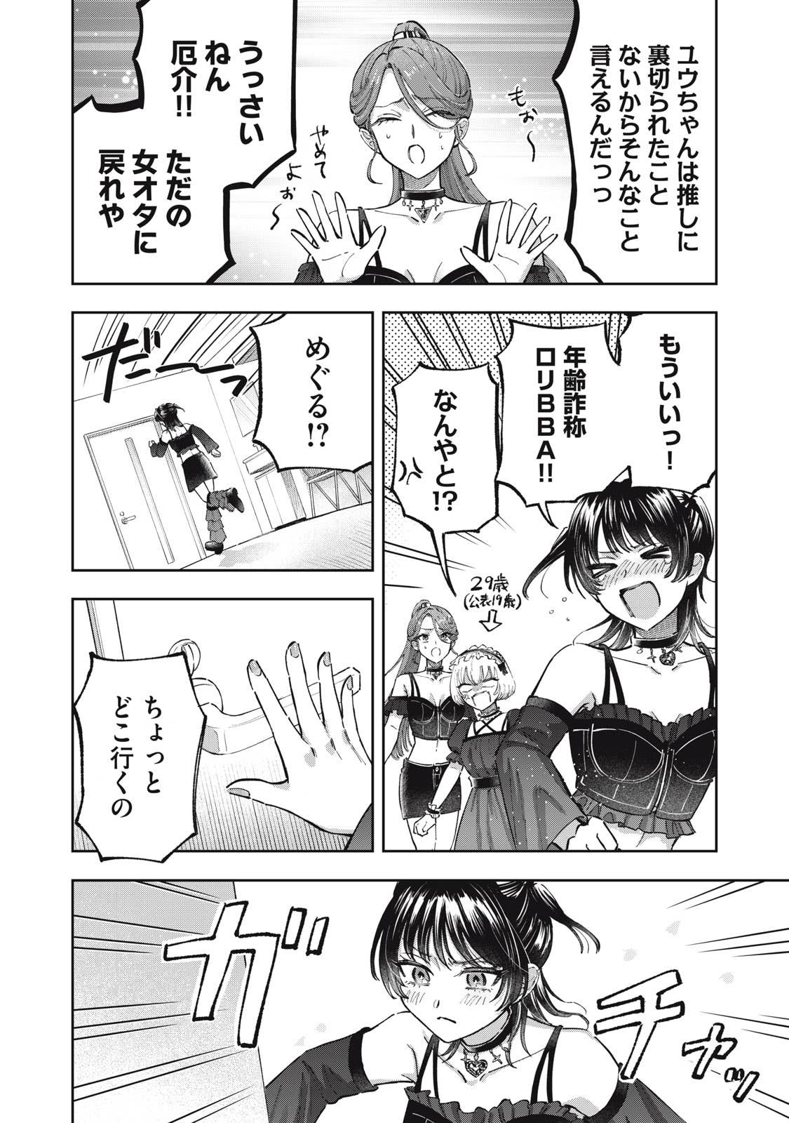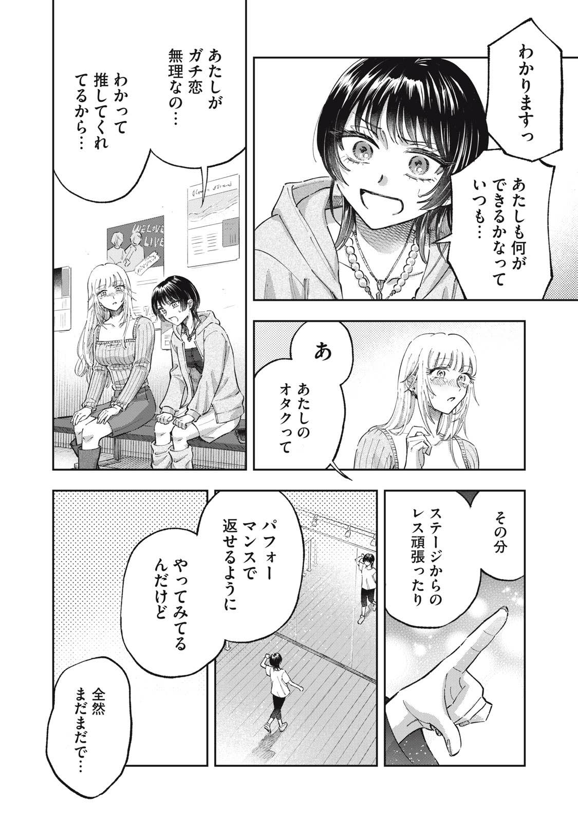 推しがことごとくオタクと繋がって(交際して)引退してしまう、かわいそうなアイドルオタクの五月めぐるは、自分自身が”ガチ恋厳禁”の皆が安心して応援できるアイドルになればいいという理論に辿り着き、アイドルグループ「ChouChou」としてデビューする。しかしそこに新加入メンバーとして現れたのは、かつてファンとの繋がりが噂されたアイドル・敷島遥で‥‥。