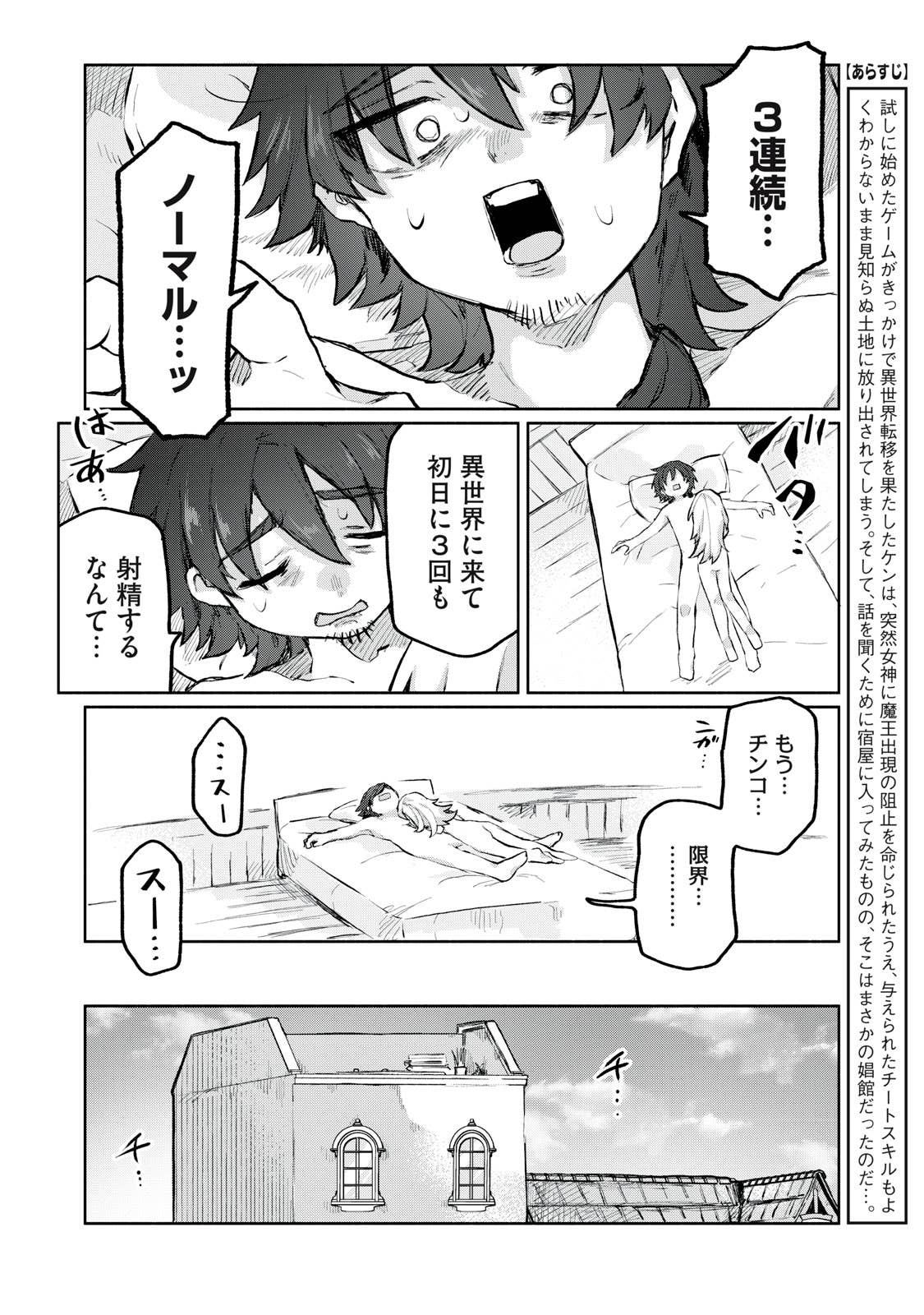 ノクターンノベルズで1000万PV超えの人気作がついに漫画化! 仕事終わりの夜、試しに始めたゲームがきっかけで〝異世界転移〟を果たしてしまったケン。突然女神に魔王出現の阻止を命じられたうえ、与えられたチートスキルはというもの。この謎の力を駆使して、無事に世界を救えるのか⁉煩悩だらけの異世界奇譚、開幕!!