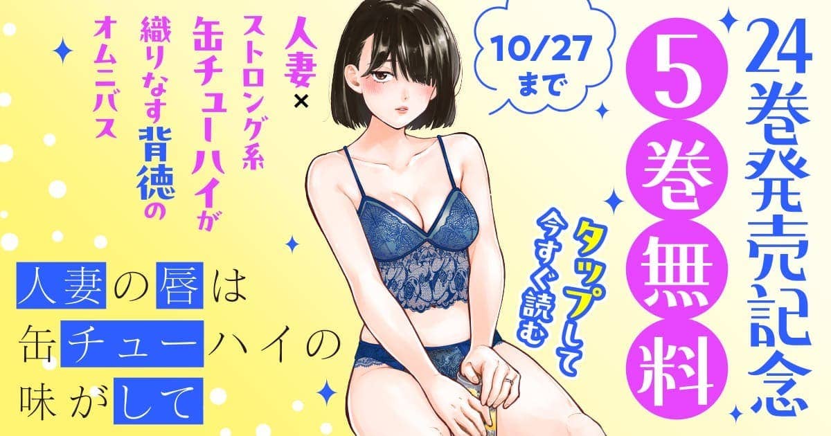 単行本第24巻発売記念『人妻の唇は缶チューハイの味がして』が5巻無料!