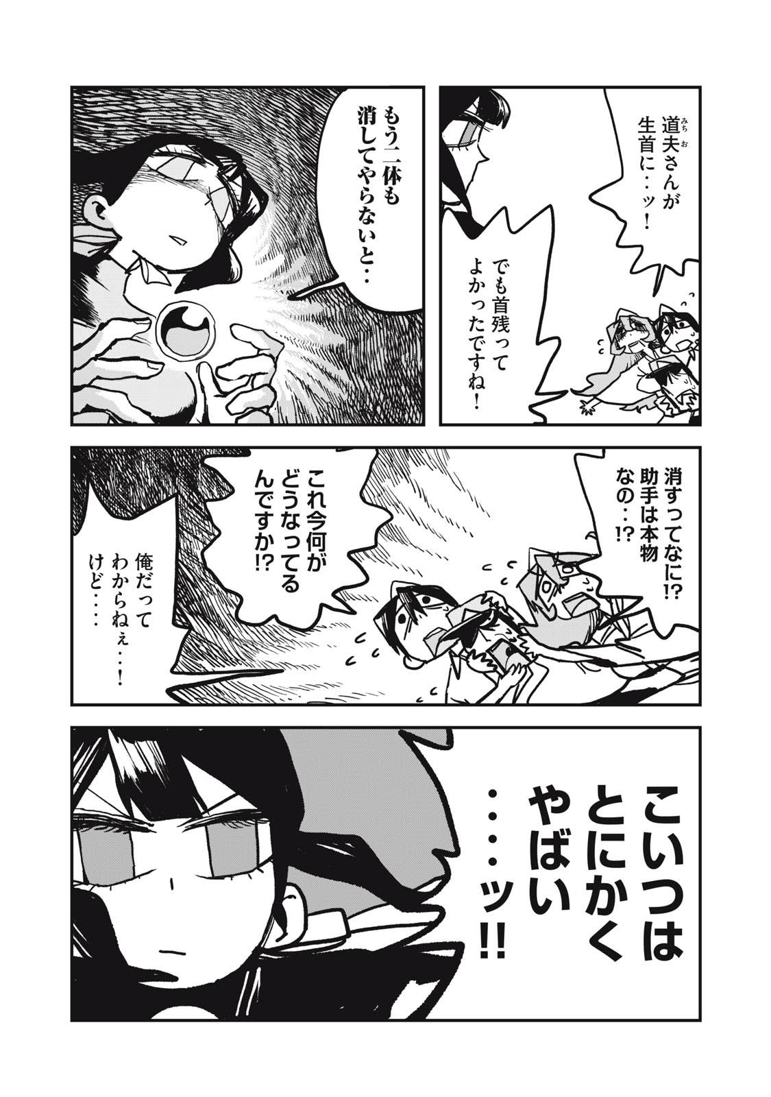 両親を亡くし、自分も首を吊って幽霊となった思丸。地縛霊の霊子と部屋を飛び出すと、悪霊を駆除する幽霊の道夫と出会う。思丸は悪霊を退治する術を教わり、さっそく試すが失敗に終わる。すると、自称日本一の最強霊媒師が現れ、インチキだとバカにしていると‥‥。