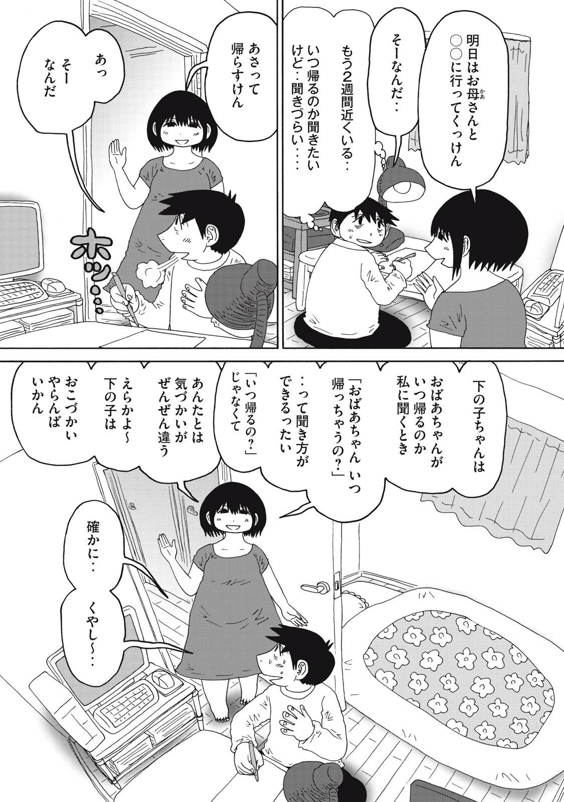母は若い頃、東京で学んでいた時期があり、関東には今も友人がたくさんいます。父が亡くなり、母も年をとり「仲の良かった友だちに、会えるうちに会っておきたい」と思うようになったようです。そんな用事のついでに、ここ数年、何度か我が家にも遊びに来ています。母は料理人ではありませんが、レストランで長く、お客様に料理を出す仕事をしてきました。人をもてなすのが好きで、子どもたちや夫が喜んでくれるのが嬉しいみたいです。うちに来ると「シゲさんは、これ好きやろか」「あの子たちに、これ食べさせたか」と言いながら、一日中、台所に立っています。そんなふうに、ご飯を作る母の姿を見るのは、私にとっても嬉しい時間でした。夫や子どもたちのおかげです。母は「これが最後かもしれない」と毎回言うのですが、きっとまた、そう遠くないうちに来るでしょう。
