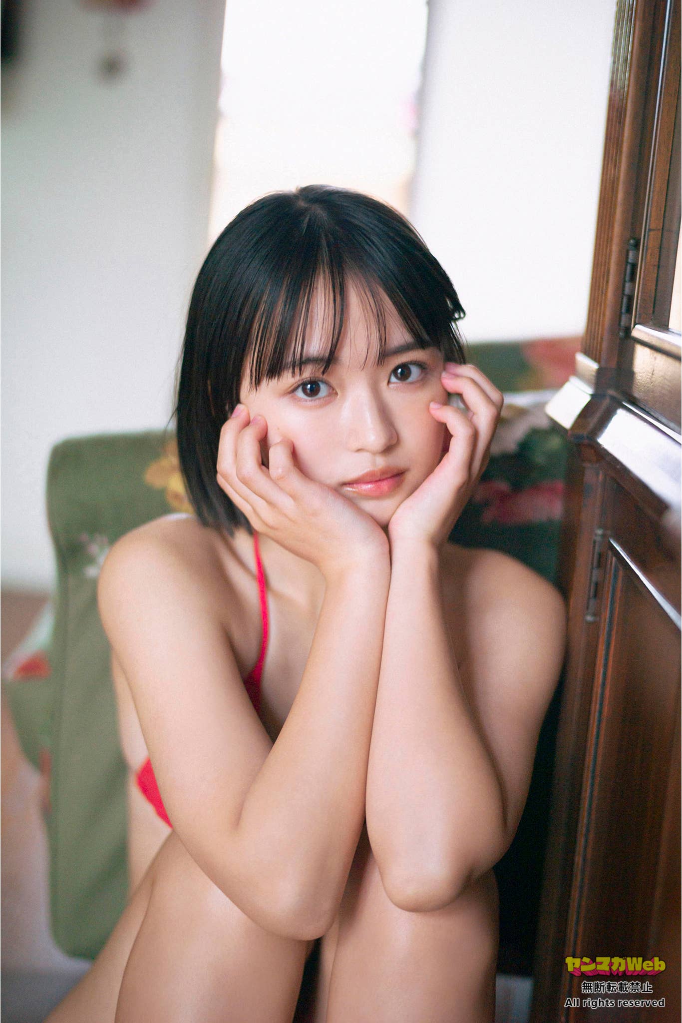 』に登場。赤の水着を身にまとった儚げなカットを披露した。